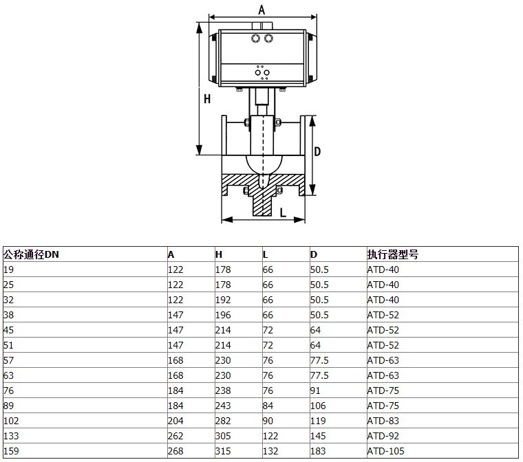 采用新型ATD系列气动执行器,有双作用式和单作用式(弹簧复位),齿轮传动,安全可靠;大口径阀门采用AW型系列气动执行器拔叉式传动,结构合理,输出扭矩大,有双作用式和单作用式。